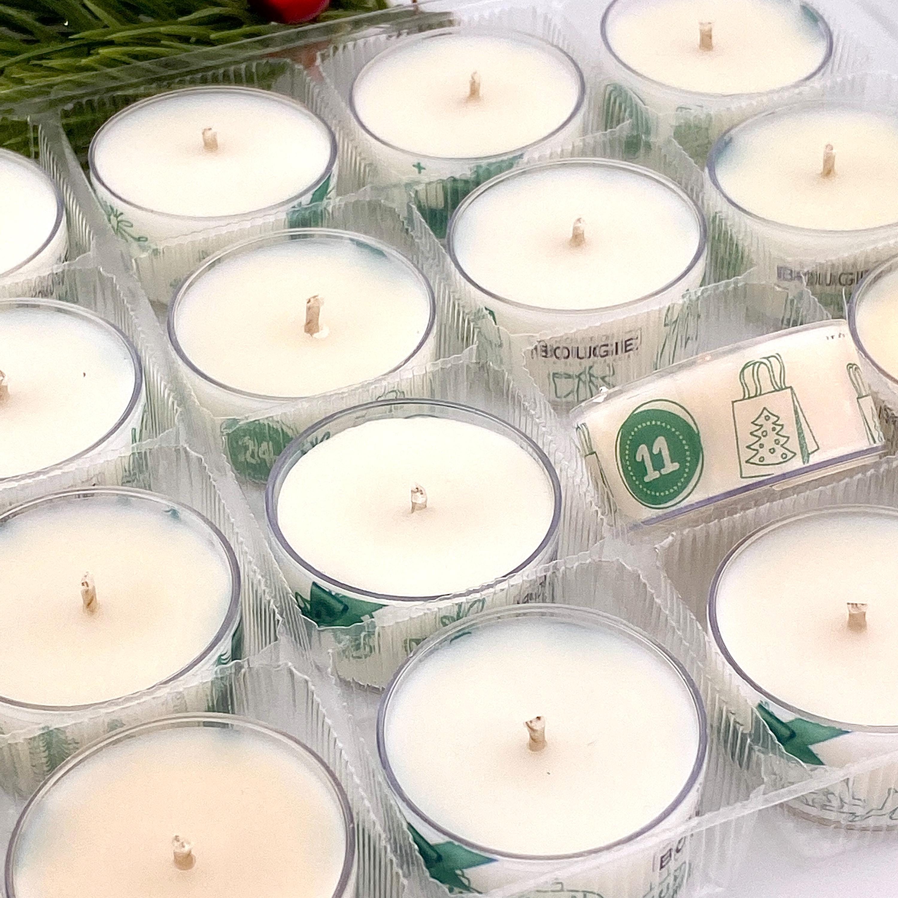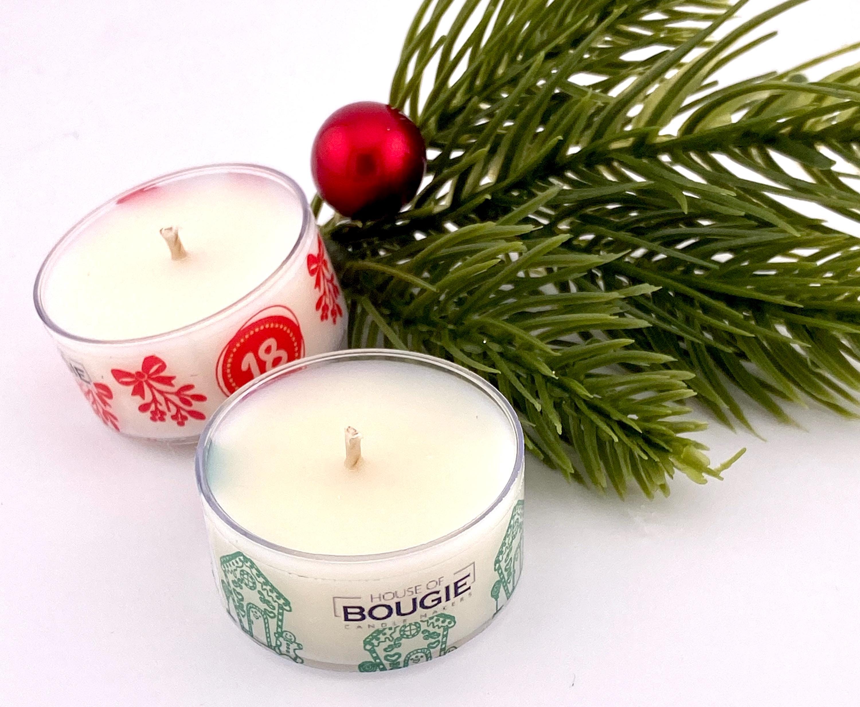 Each day reveals a hand-poured tealight from House of Bougie, featuring curated scents from our signature collections. Made with a custom soy–beeswax blend, cotton wicks, and absolutely no dyes or phthalates—for a cleaner, more mindful burn.